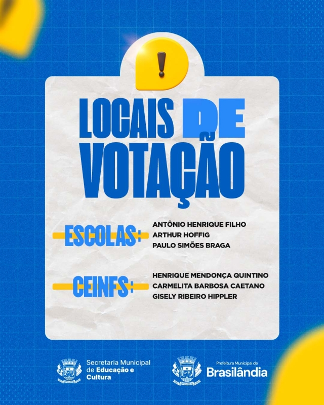 O futuro da educação pública de Brasilândia será definido nesta sexta-feira (03) durante as eleições para diretores e vice-diretores da rede municipal de ensino. Das 7h às 18h (horário de MS), seis unidades escolares abrirão suas portas para que professores, funcionários, alunos a partir do 6º ano e pais ou responsáveis possam escolher democraticamente os gestores que irão comandar as escolas pelos próximos dois anos.