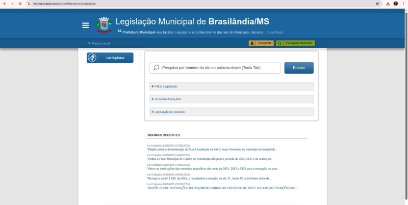 Em mais um passo para consolidar uma gestão transparente e acessível, a Prefeitura Municipal de Brasilândia acaba de disponibilizar em seu site oficial toda a legislação municipal, incluindo leis, decretos, portarias e resoluções. A iniciativa visa garantir que a população tenha fácil acesso às normas que regem o município, promovendo transparência, participação social e controle cidadão.