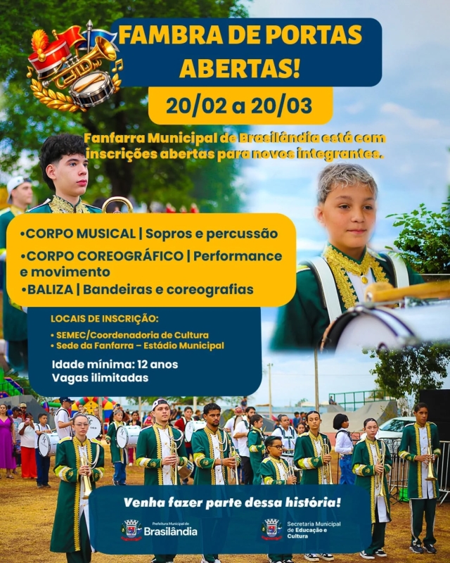 A música, o movimento e a disciplina caminham juntos na formação de cidadãos. Em Brasilândia, a Fanfarra Municipal – FAMBRA abre as portas para