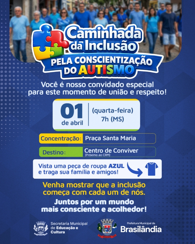 O azul vai tomar conta das ruas de Brasilândia nesta quarta-feira (1º de abril). Em alusão ao Dia Mundial de Conscientização do Autismo,