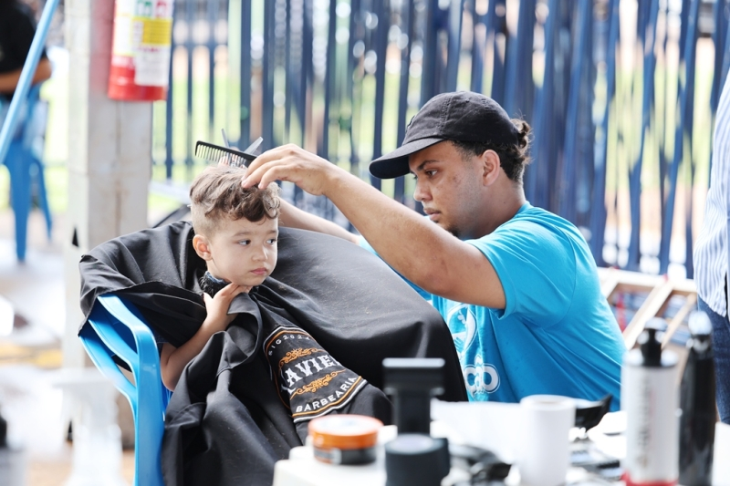 O “Abração” também é lugar de cuidar da aparência e se divertir. Filas se formaram para os serviços de cortes de cabelo e design de sobrancelhas, elevando a autoestima dos moradores. Enquanto isso, as crianças faziam a festa com pintura facial, escorregador, pula-pula e se deliciavam com a distribuição gratuita de pipoca, picolé e guaraná.