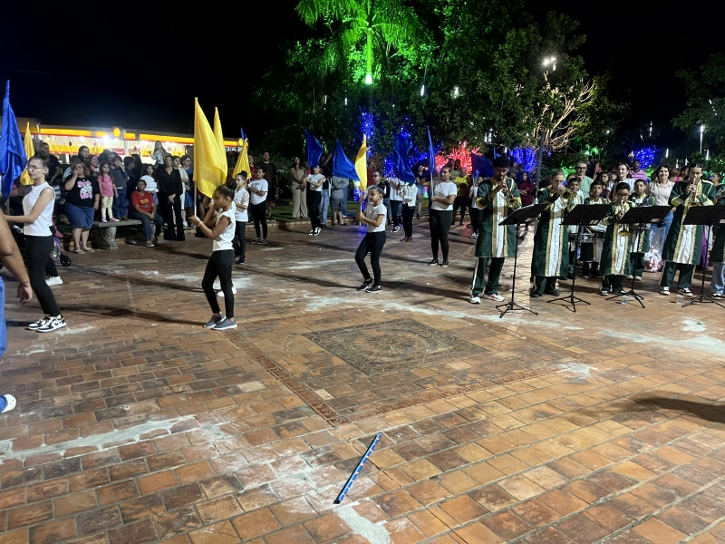 A noite deste sábado, 15 de novembro, foi de magia e encantamento na Praça Central de Brasilândia. Centenas de famílias se reuniram para a tradicional Cantata de Natal, evento que marcou o início das festividades de fim de ano no município. A prefeita Márcia Amaral, acompanhada de secretários municipais, adjuntos e vereadores, deu as boas-vindas à população, destacando a importância do momento de confraternização.