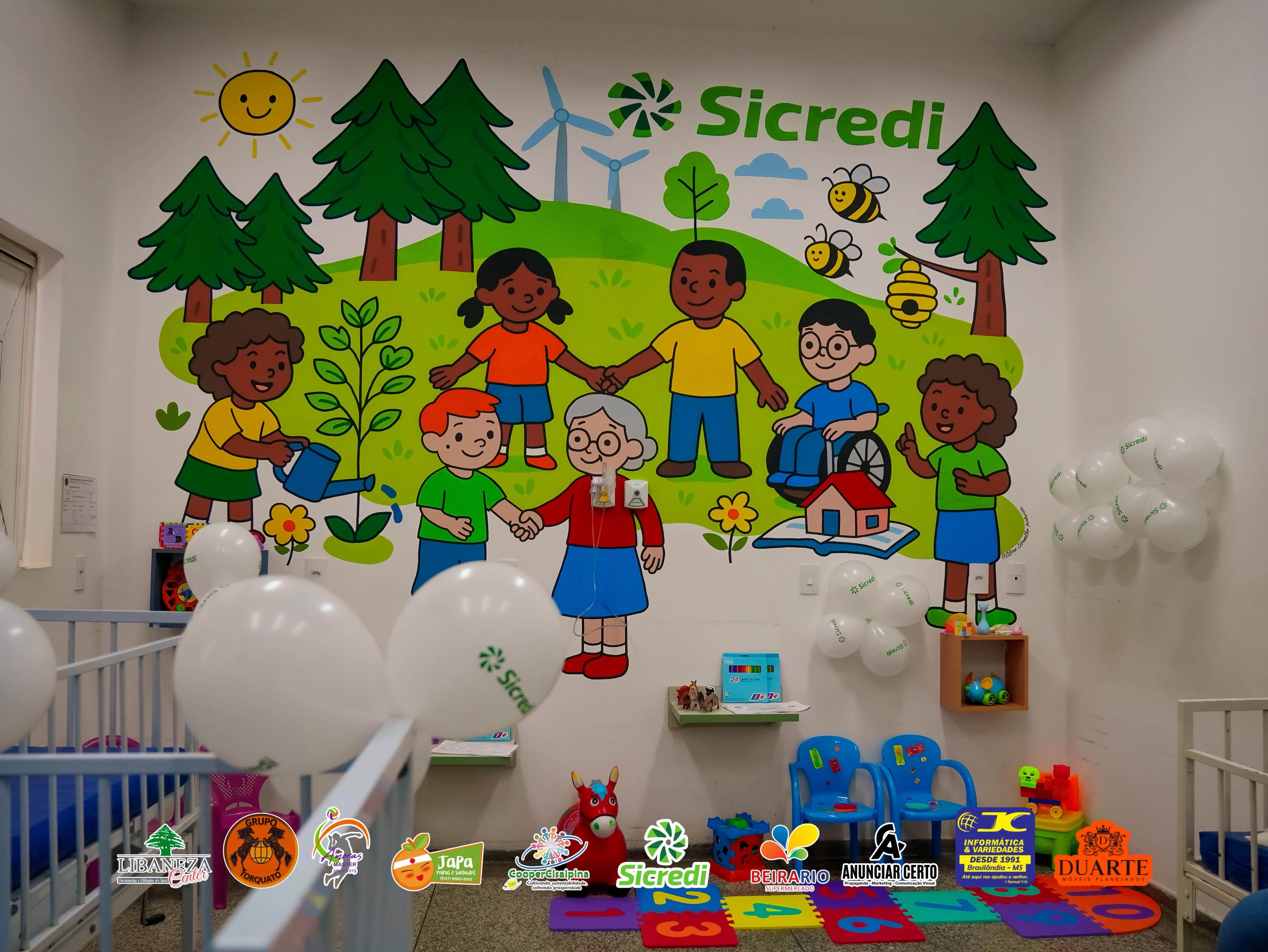 Nesta sexta-feira (29), dentro da programação do Dia C – Dia de Cooperar, o Sicredi, em parceria com a Cooperativa Cisalpina e apoiadores locais, realizou a entrega de um painel colorido na ala infantil do Hospital Municipal de Brasilândia.
